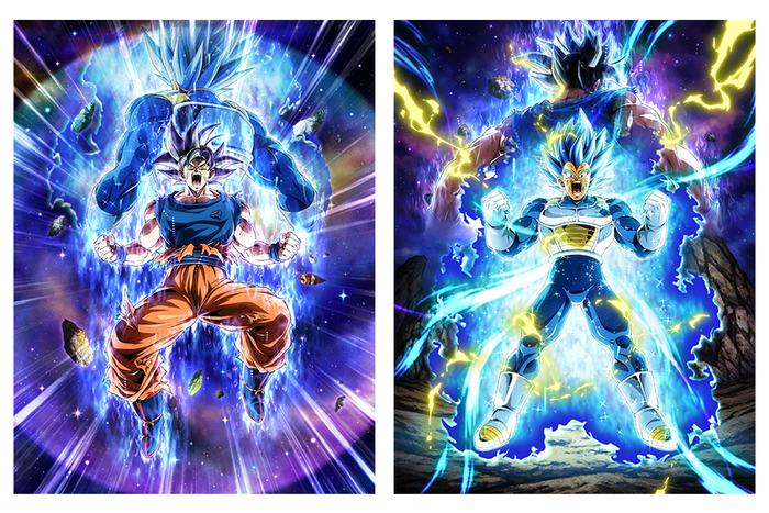 Left: "[Challenging the Strongest of the Strong] Goku (Ultra Instinct -Sign-) + Super Saiyan God SS Evolved Vegeta"