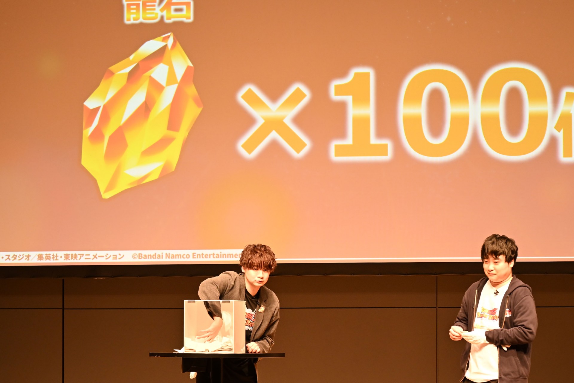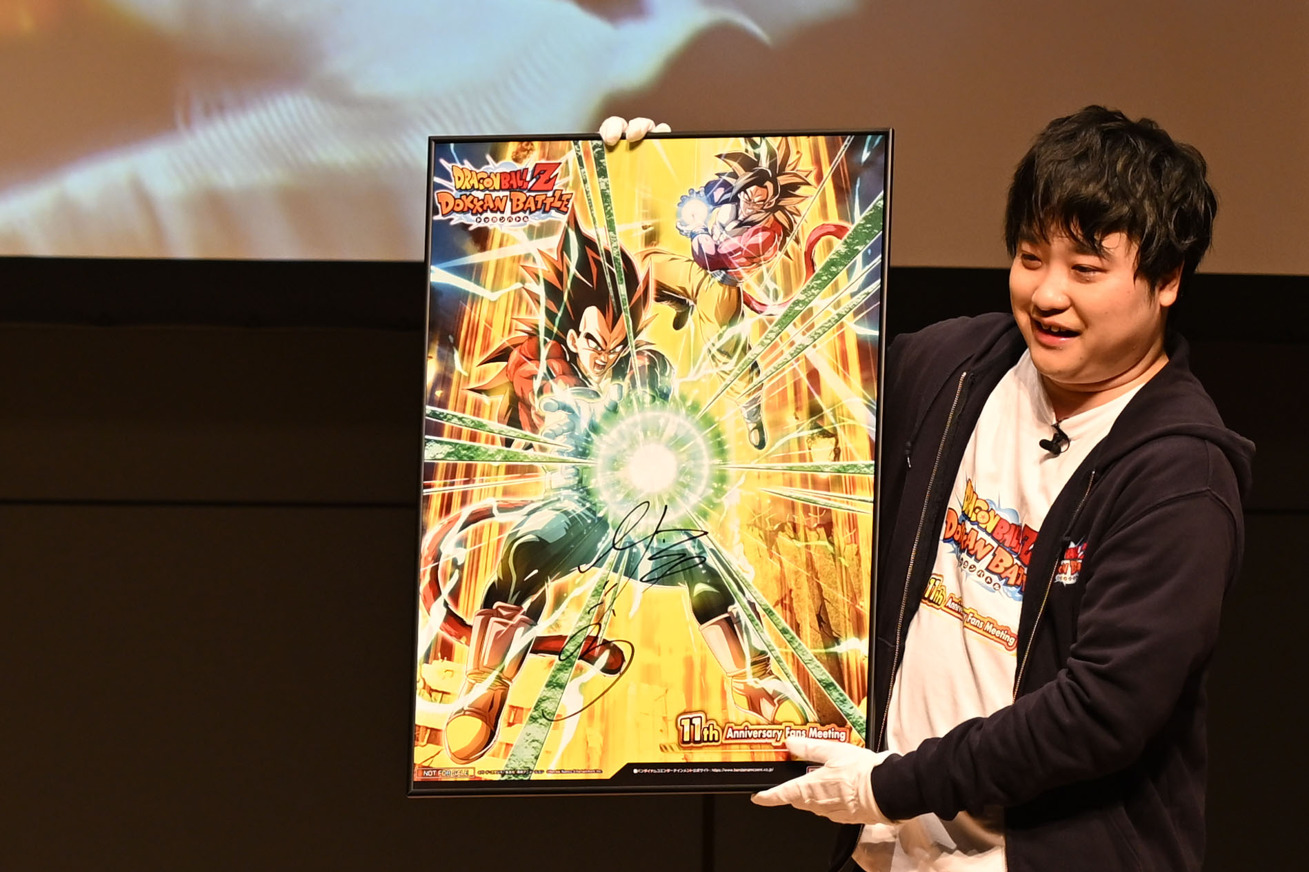 Next up was the drawing ceremony for all venue attendees! Venue attendees were worked into a frenzy as the winners were announced for a number of prizes, including original Dokkan Battle goods exclusive to the venue, a special prize of 100 Dragon Stones, and a poster signed by the voice actor for Vegeta, Ryo Horikawa!