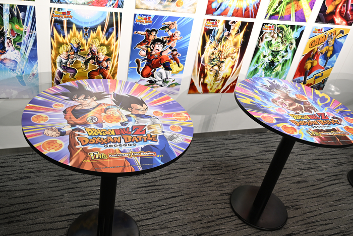 The round tables where attendees could rest and socialize were decorated with characters that were featured in login bonuses from previous anniversary campaigns. By interacting with characters representing the year they first started playing, guests were able to reminisce on their early days in Dokkan Battle.