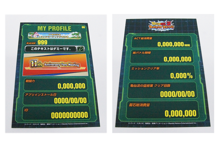 These are the My Profile cards that were handed out to attendees upon entry! They're loaded with the player's Dokkan Battle data, including rank, total battle count, mission clear rate, and more!