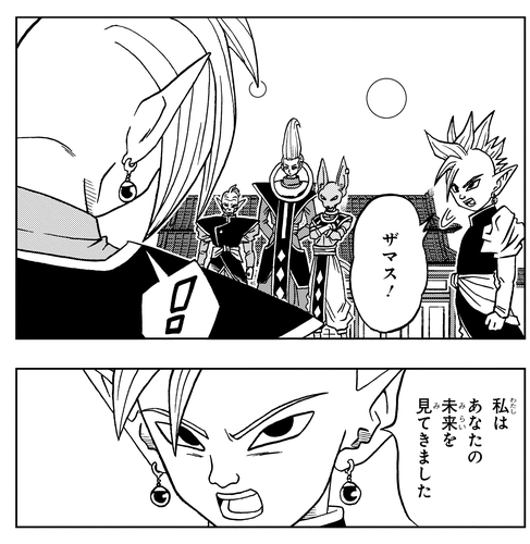 After learning that Zamasu had asked Zuno if "it's possible for a god to switch bodies with a mortal", the East Supreme Kai investigates future Zamasu using the Ring of Time.