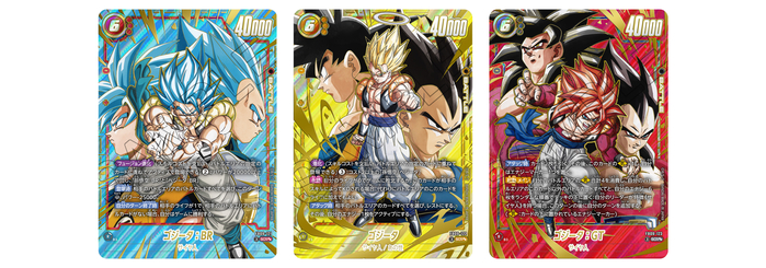 The three new cards with the highest rarity are "Gogeta: BR", "Gogeta", and "Gogeta: GT"! In a huge move, these three SCR cards from the second anniversary set all have Super Alt-Art versions!