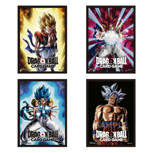 The four designs included in the lineup are "Gogeta", "Gogeta: GT", "Gogeta: BR", and "Ultra Instinct Son Goku". Enjoy battles with sleeves that match your style or your deck!