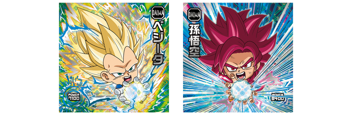 Vegeta and Goku from Dragon Ball DAIMA are here as "Ultimate God Rare" stickers! These super-gorgeous stickers employ holographic foil stamping to magnificently portray the powerful moves unleashed in the climactic scenes of DAIMA!