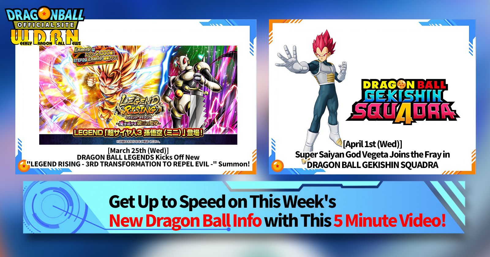 "Weekly Dragon Ball News" is a video series updated every Monday (JST) to bring you the latest news in the world of Dragon Ball! Join V Jump editor Victory Uchida as he covers all the hottest info released in the previous week as well as fresh updates like new product info and site news for the week to come!