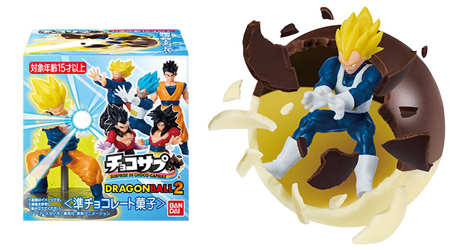 Dragon Ball Choco-Surprise 2 hits stores across Japan on April 6th! This series has a surprise in store for fans, as 45-55 mm figures with a diorama base are hidden inside each delicious, two-colored, capsule-shaped chocolate snack!