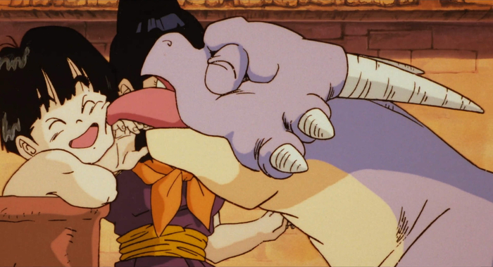 After nearly being bitten when trying to talk to him, Oolong snaps, "That’s great… He's just like Piccolo! Everything for Gohan, nothing for me!"