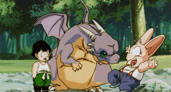 Hire−Dragon grows completely attached to Gohan and follows him home, but when Chichi objects to his presence, Gohan ends up hiding him in a cave.