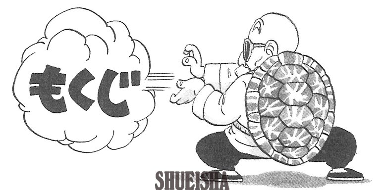 Here's a title illustration drawn above the table of contents. Kamesennin casually fires off a Kamehameha, while the words "Table of Contents" spring out, resembling a sound effect. It's a playful illustration that makes ingenious use of horizontal space.