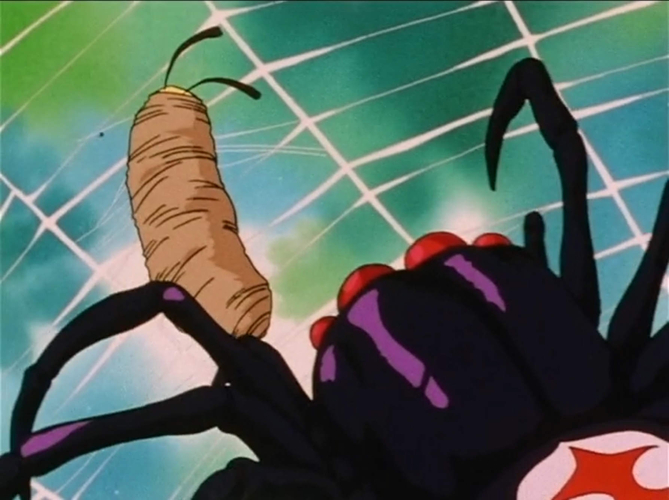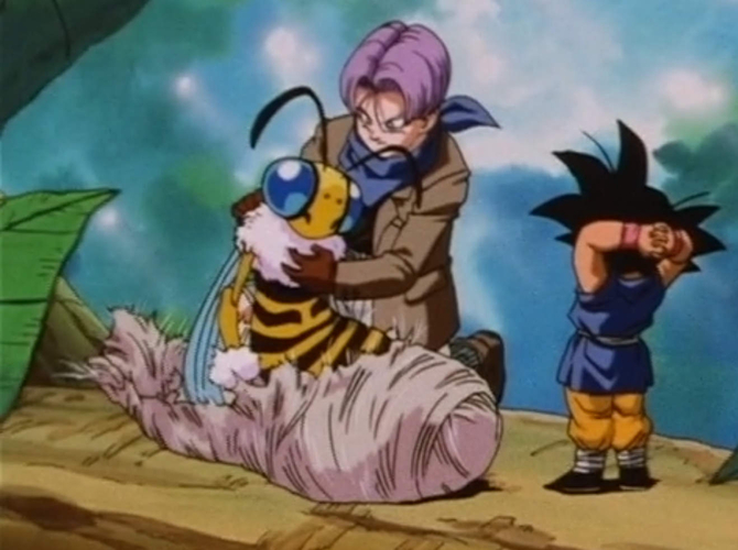 She gets trapped and immobilized in a spiderweb but is rescued by Trunks and Goku.