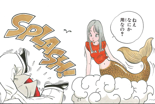 However, the beautiful woman that Goku found was in fact a mermaid! Taken aback but undeterred, Kamesennin tried getting a little too handsy with his new guest and instead ended up getting a good smack on the face to remember her by before she dove back into the sea.