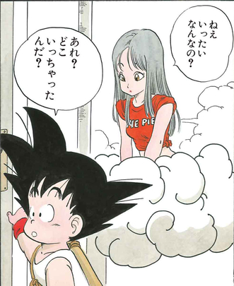 As we all know, only the pure-hearted are able to use the fantastical flying cloud—the likes of Bulma and (unsurprisingly) Kamesennin fell comically straight through it when they tried their luck—but with Mermaid sitting pretty atop it, one can only assume she's got a pure heart just like Goku!