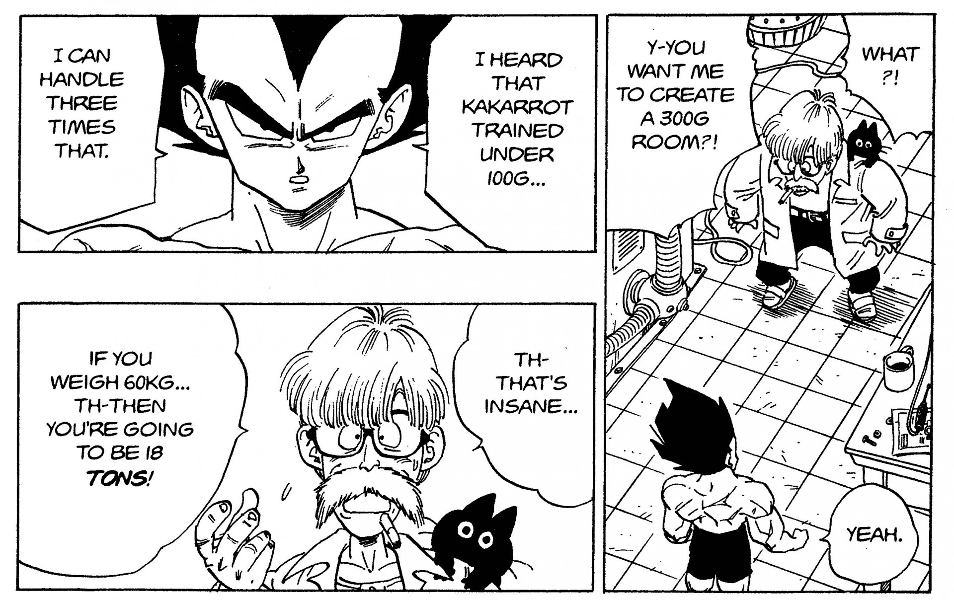 Dr. Brief in shock at Vegeta's request for a 300G training room