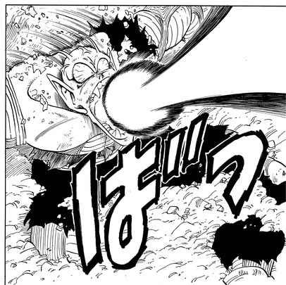 In the chaos of a battle that saw the tournament arena blown out of existence, Piccolo was eventually downed by a defiant Goku. However, the Demon King's successor was not done yet! He managed to stand and, bringing himself back from the brink, managed to land a devastating blow on Goku.