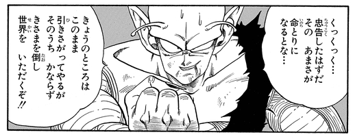 Plotting his revenge against Goku, Piccolo entered the 23rd Tenkaichi Budokai under the pseudonym "Majunior".
