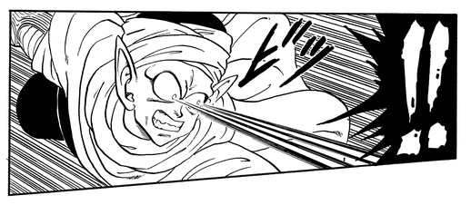 Piccolo opens his mouth wide and fires a powerful beam of Ki at his opponent. We saw him use this move against Goku after forcing himself back from the brink of death.