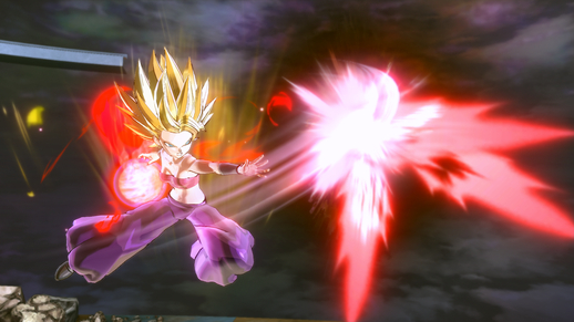 After firing off two savage Kidan, Caulifla blasts her foe with a Kikouha!