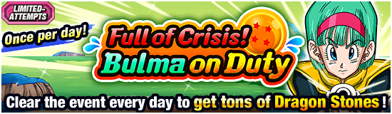 The once-per-day special event "Full of Crisis! Bulma on Duty" is on! You can get an amazing 10 Dragon Stones every day while the event lasts by clearing the missions!