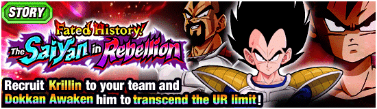 A new story event titled "Fated History! The Saiyan in Rebellion" is on now! Play the event to get "[Preparations Made Before the Final Battle] Krillin" and Dokkan Awaken him to unlock his Active Skill that lets him exchange with Vegeta! There are also event missions available, so be sure to clear those too and reap their rewards!