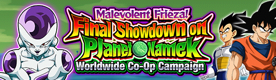 The "Malevolent Frieza! Final Showdown on Planet Namek Worldwide Co-Op Campaign" is on! Take on the "Extreme Z-Area Planet Namek Saga" event and clear the stages to contribute to the global clear count and complete missions! Each time the clear count hits certain goals, the co-op mission rank will increase. Along with the rewards you'll get for each rank, if players make it to the highest rank in the campaign, you can get Dragon Stones, a "Showdown on Planet Namek" wallpaper, and other awesome rewards! Use the combined strength of Dokkan warriors all across the globe to clear them all!