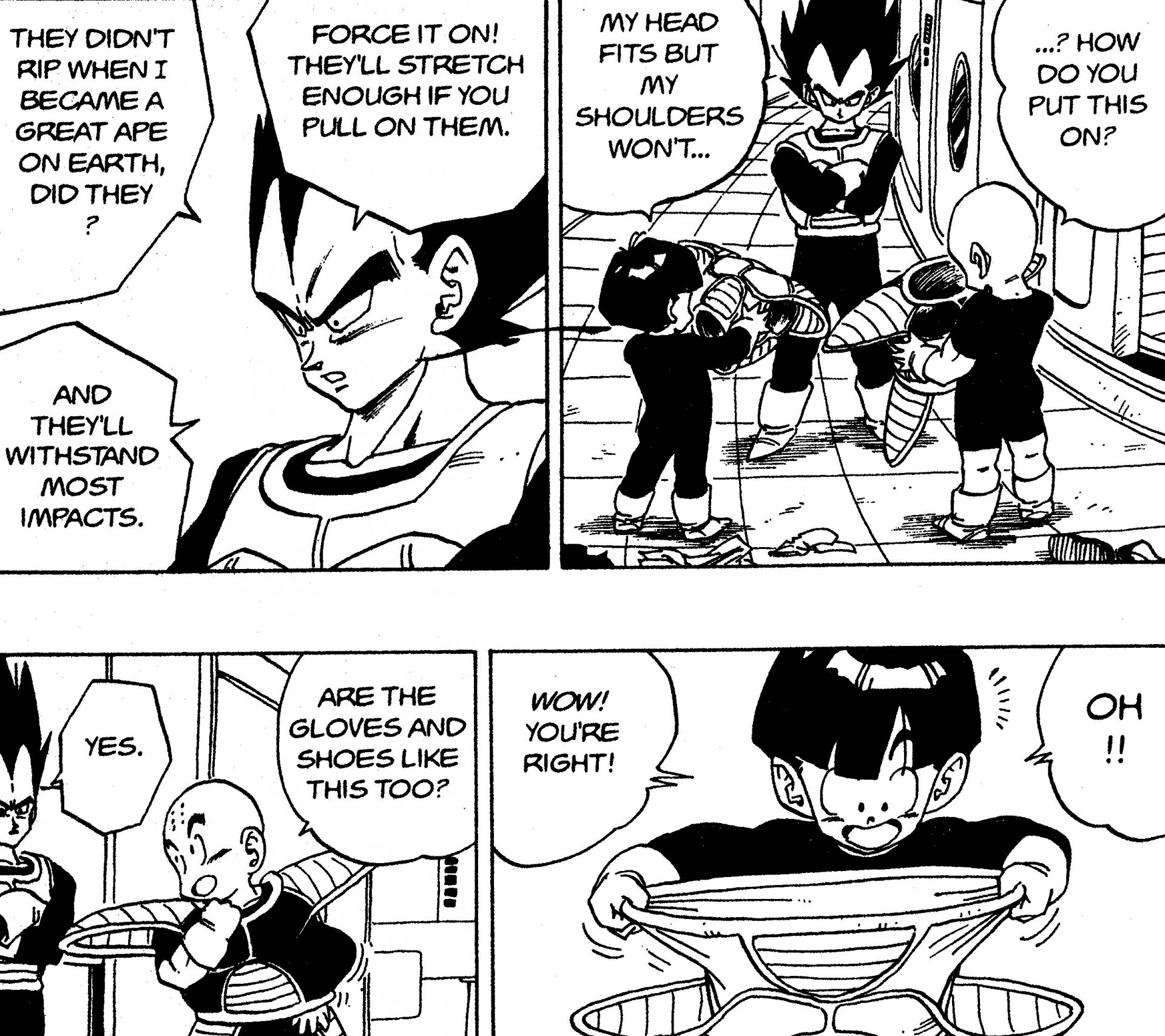 So for Vegeta's battle armor, if it didn't have around those levels of elasticity post-Great Ape transformation, he wouldn't be able to fight very effectively.