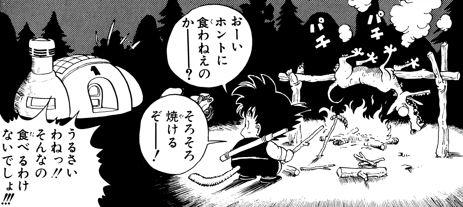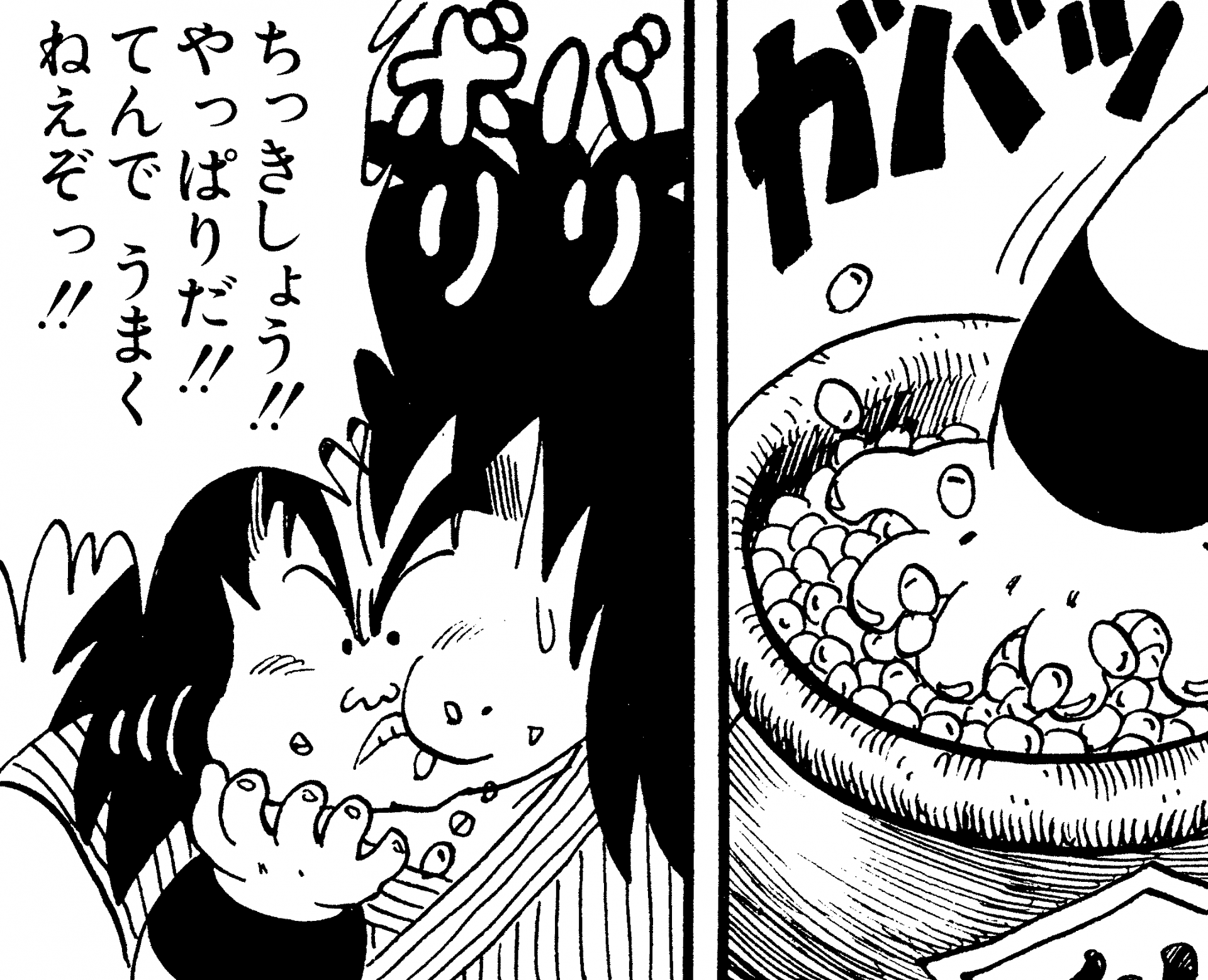 Nothing seems to go to waste in the world of Dragon Ball. Whether it's a wolf, centipede, or giant octopus you've hunted, or even one of Demon King Piccolo's underlings who you've just "roasted" in battle like Cymbal, it's all fair game! Even the stately Saiyan prince Vegeta has his odd habits when it comes to food—as if invading a planet wasn't enough, he'll sometimes even eat its alien inhabitants whole! Talk about rubbing salt in the wound... These gastronomical feats are often reserved for the appetites of Saiyans, but even some Earthlings like Yajirobe can hold their own when it comes to muscling down wild fare.