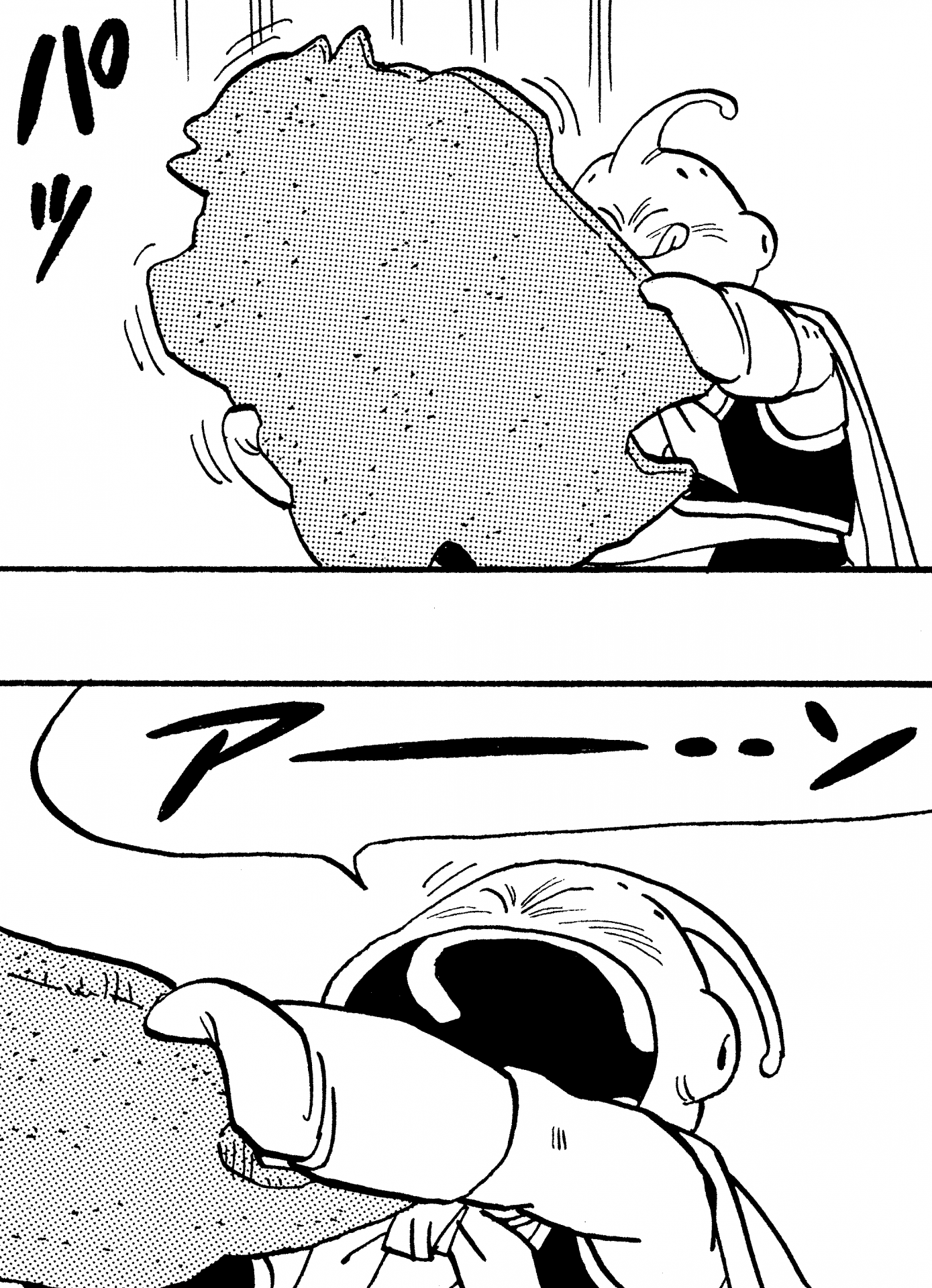 One of Majin Buu's iconic moves was to turn people into sweets like chocolates or candy and munch them down. He can actually eat normal food too, as seen when Mr. Satan prepared a steak in an attempt to appease him, but perhaps Buu simply prefers his version of fast food over a traditional home-cooked meal. You might judge him as a tasteless monster that consumes without distinction, but he did try dog food one time and found it unpalatable, meaning that simply being "edible" does not satisfy his criteria. Pink people-eater though he may be, he still has standards.