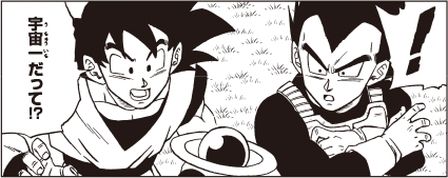 Macki uses Chichi and Bulma to summon Goku and Vegeta to Earth and asks for their help in protecting Planet Cereal from the "strongest in the universe," and then offers to escort the two Saiyans to Planet Cereal, where Granolah would be waiting.