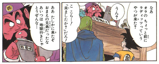 Enma permits Goku, who had sacrificed his life during the confrontation with Raditz on Earth, to keep his mortal body and go to Kaio North in order to train.