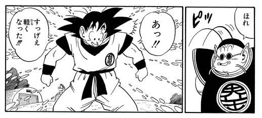 When Goku first came to train under Kaio, he mistook the Saiyan for an aspiring comedian coming to study the art of comedy and challenged him to make him laugh as a condition of becoming his disciple. The northern lord boasted that it takes quite the joke make him crack, but Goku had him doubled over with laughter with the terrible pun, "I don't even know what comedians read!! Comic books?!!!" It seems the threshold for what makes a good joke is a little lower than Kaio had made it out to be.