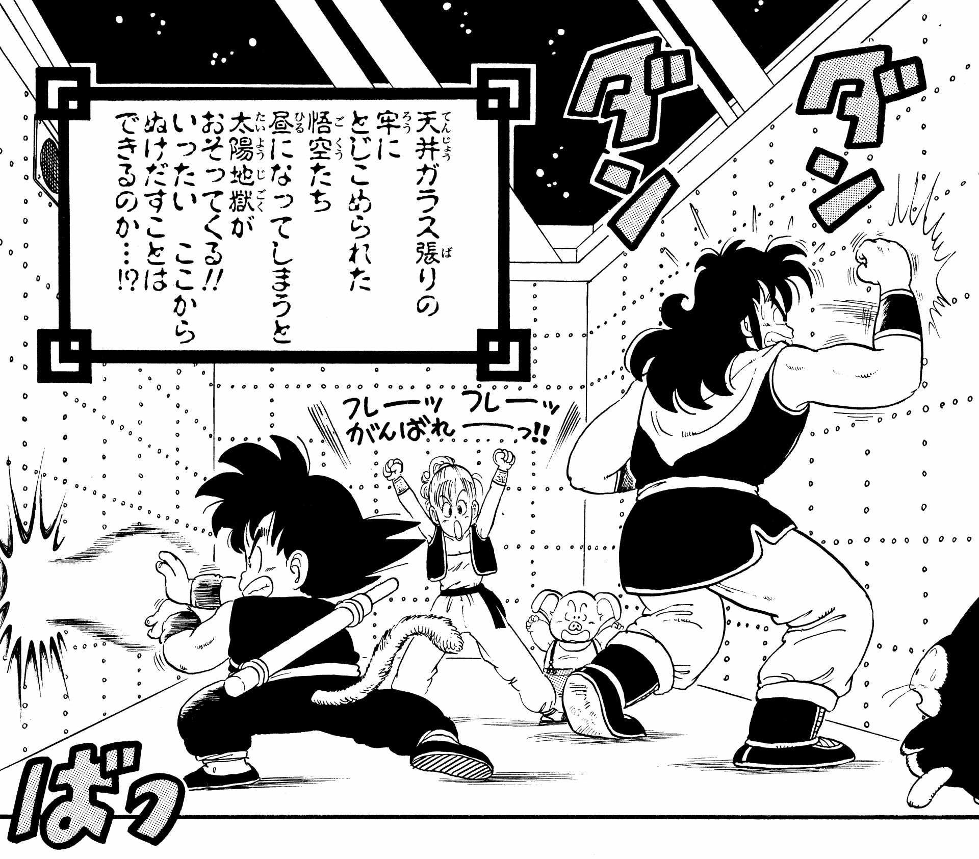 ・Tale 21, Page 1: Goku attempts to escape from the glass-ceiling prison at Pilaf's Castle.