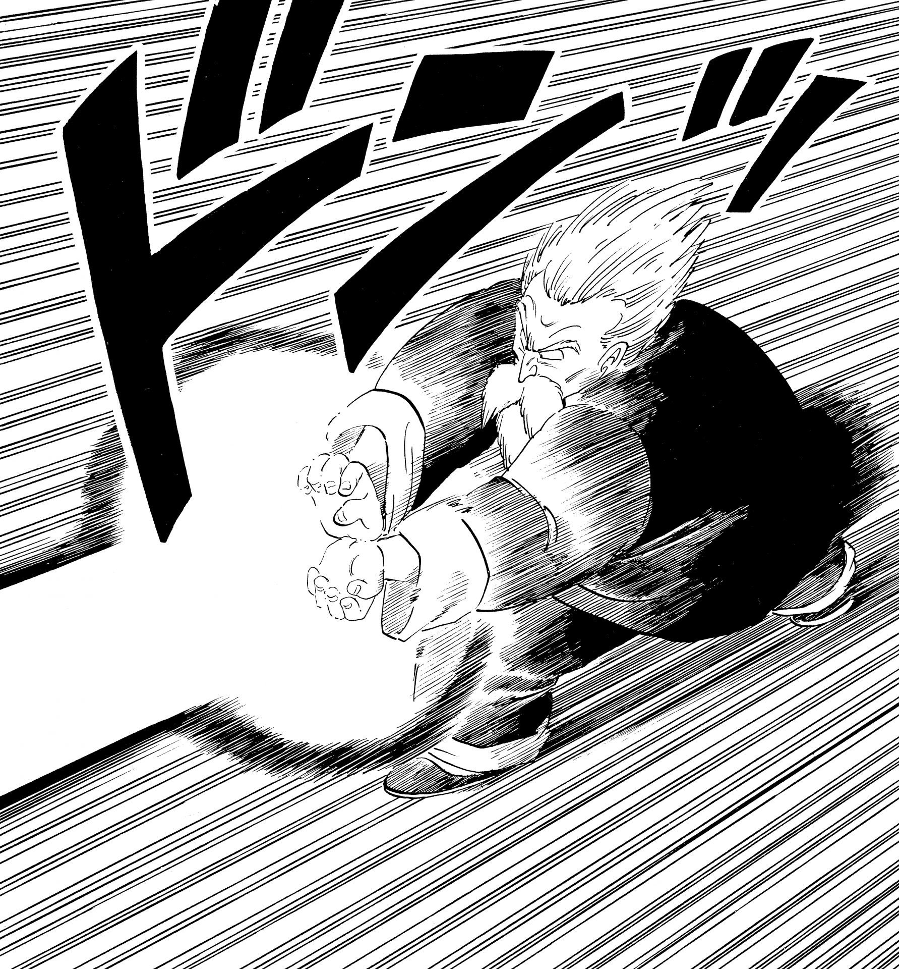 ・Tale 47, Page 11: Goku fires back at Jackie Chun at the Tenkaichi Budokai.