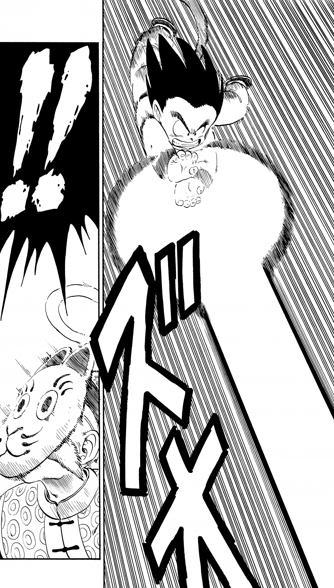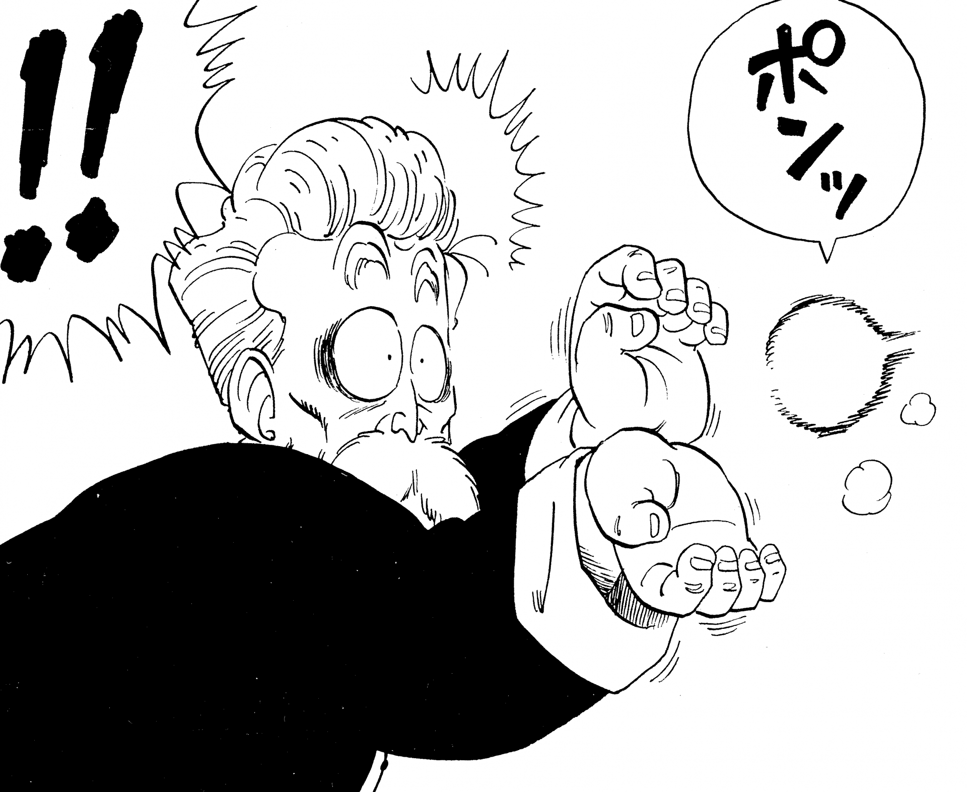 ・Tale 106, Page 13: Grandpa Gohan fires at Goku at Uranai Baba's Palace.