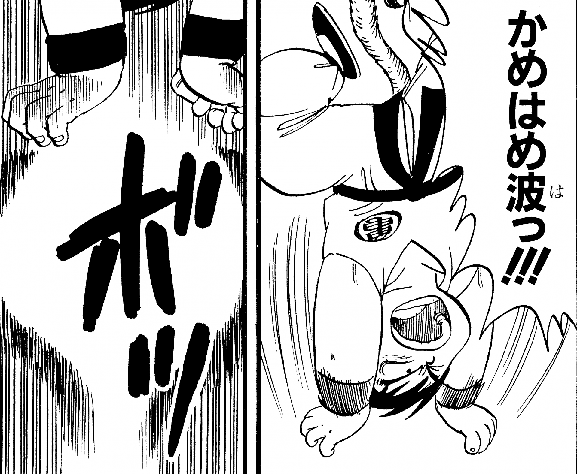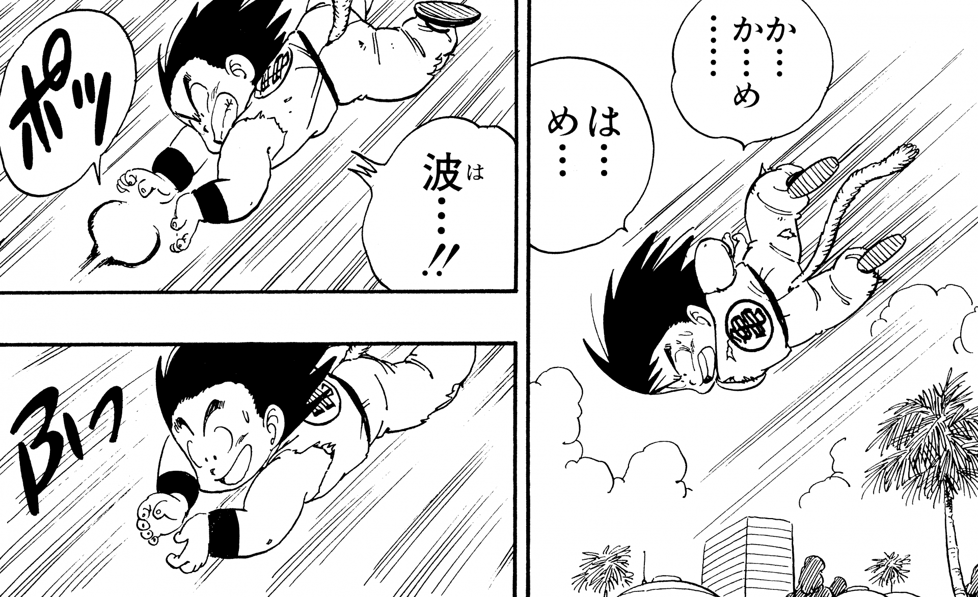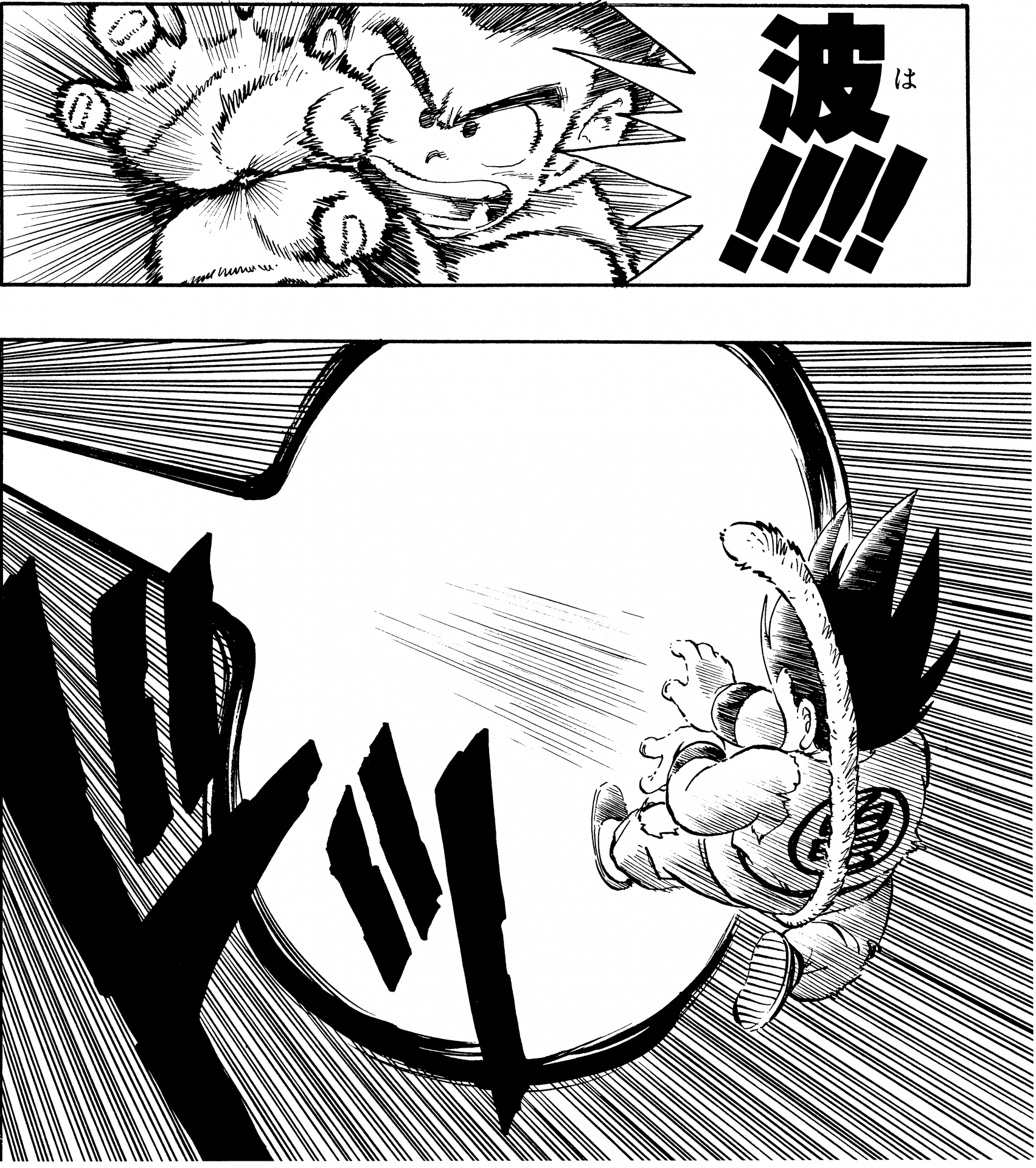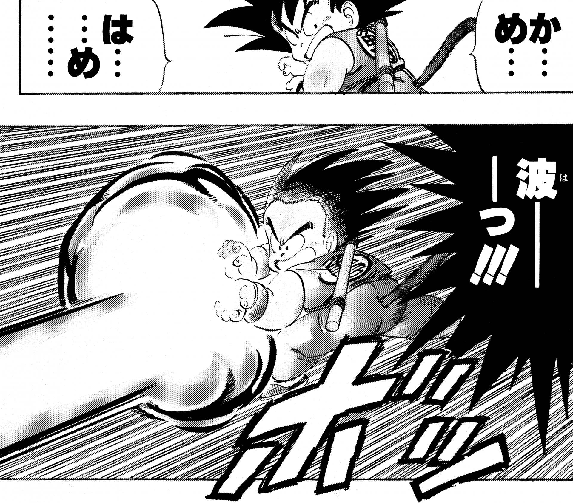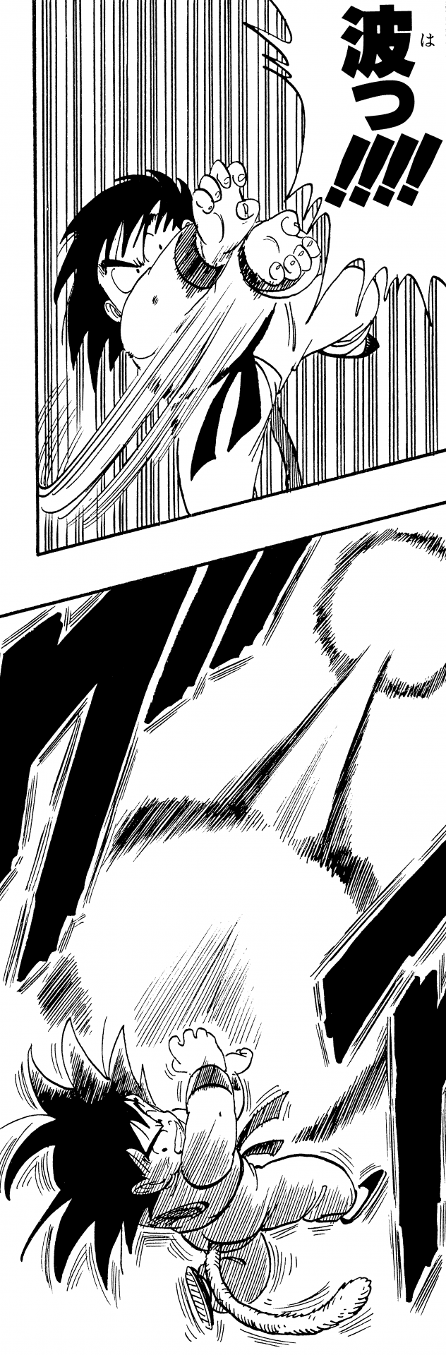 ・Tale 126, Page 6: Goku fires a Kamehameha as a means of maneuvering against Krillin.