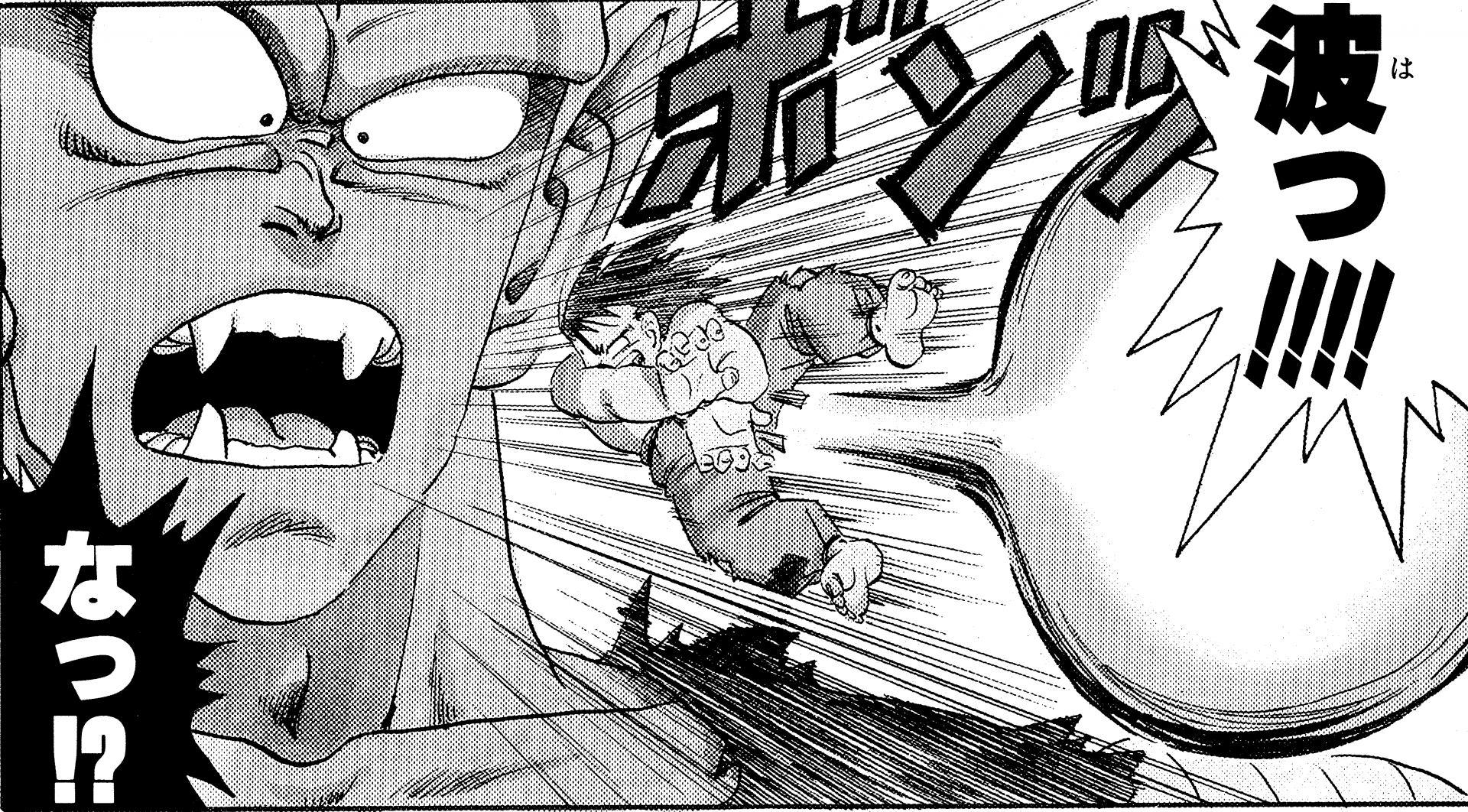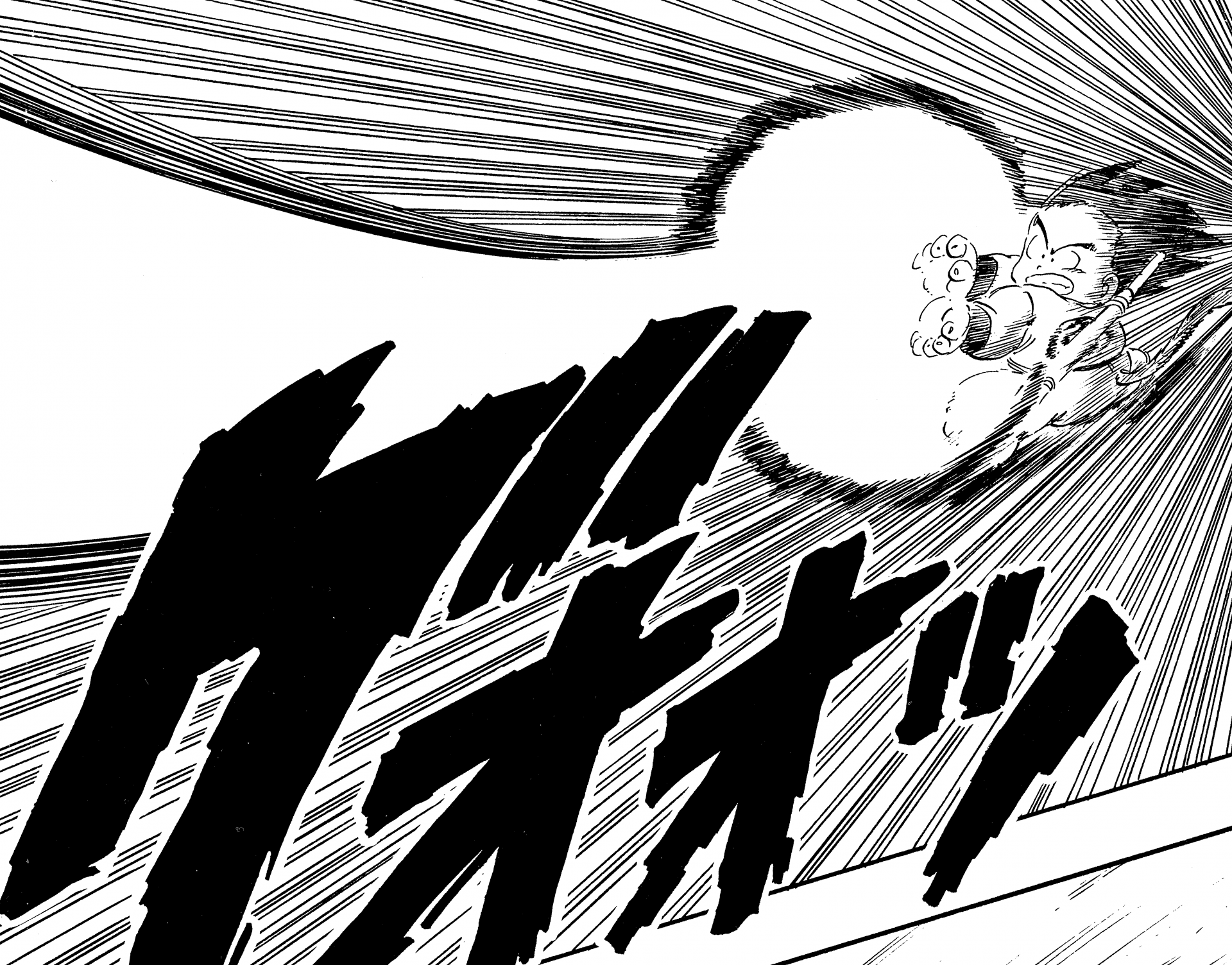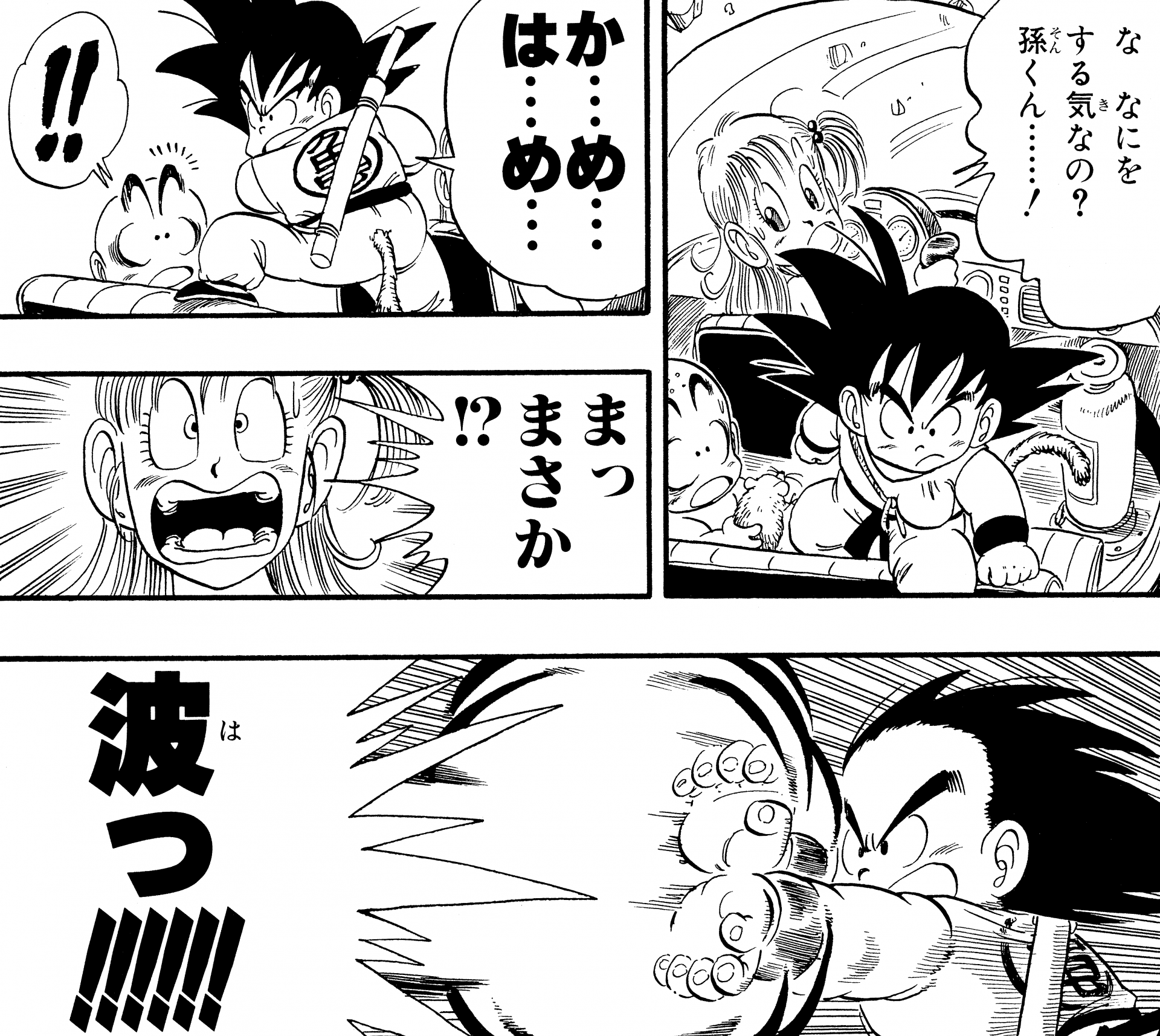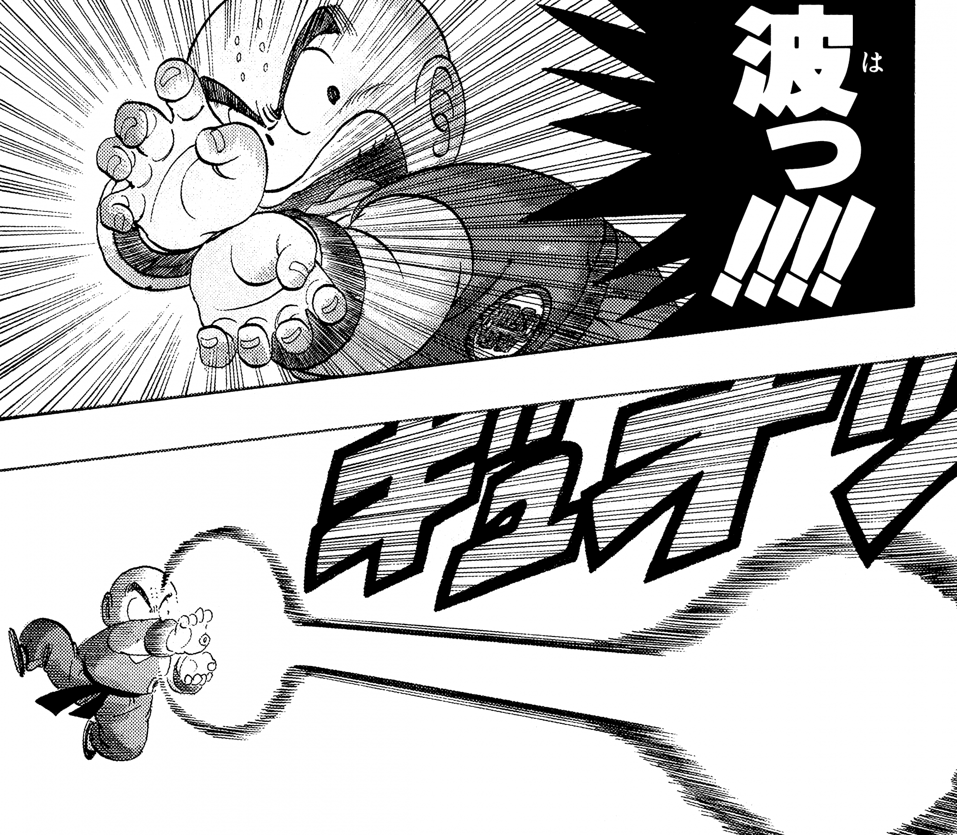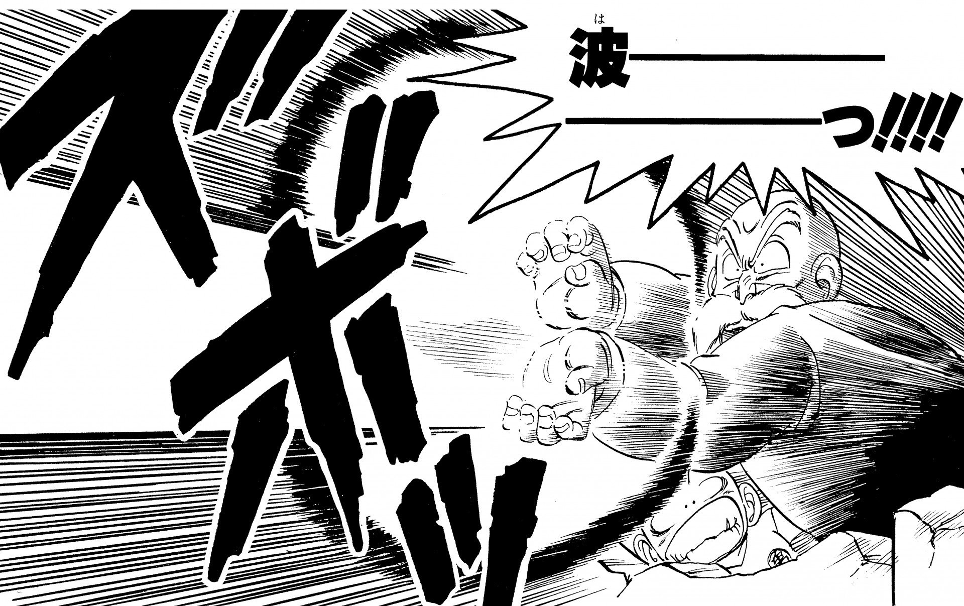 ・Tale 126, Page 6: Goku fires a Kamehameha as a means of maneuvering against Krillin.