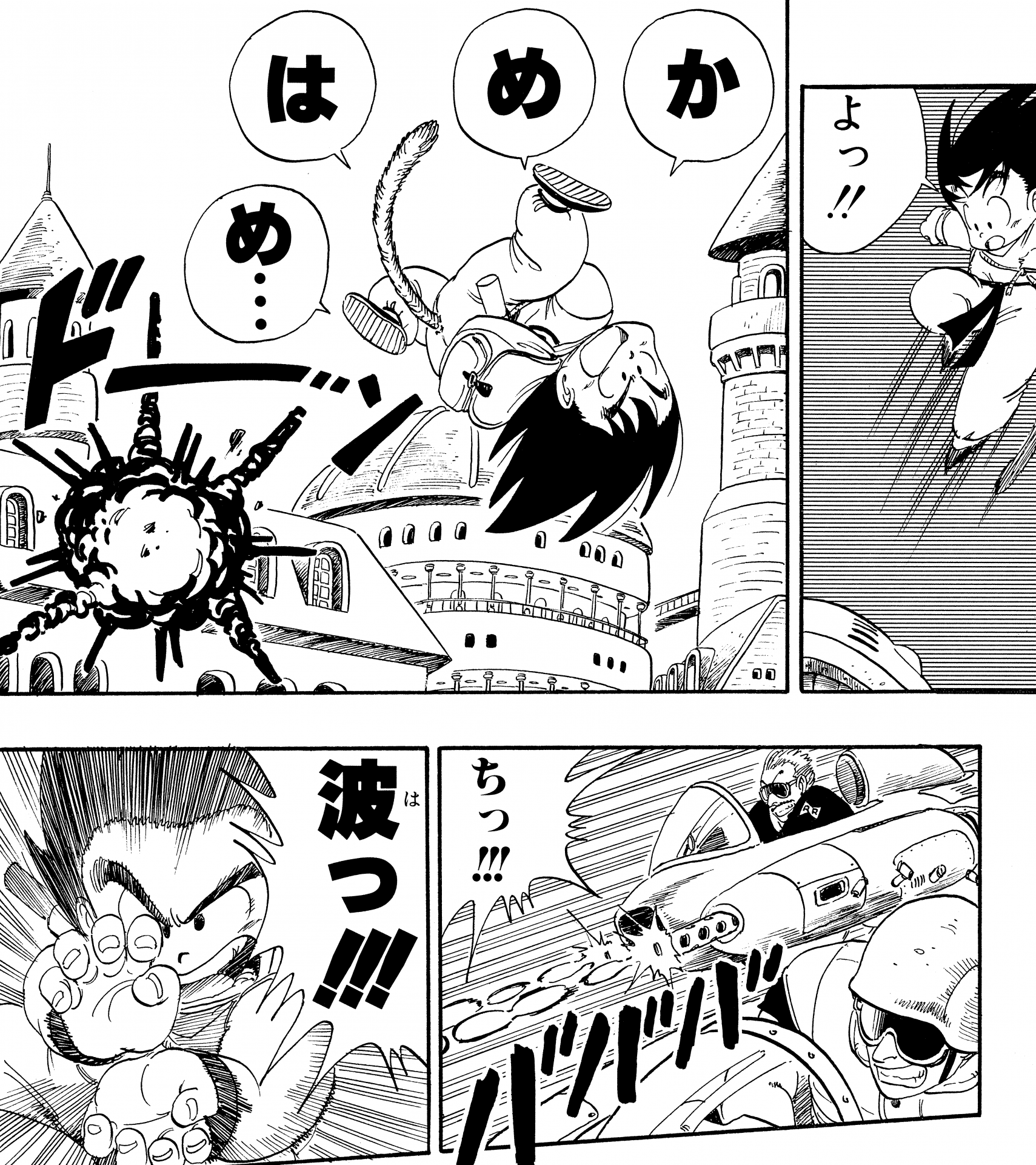 ・Tale 110, Page 12: Goku fires at the Pilaf Machine.