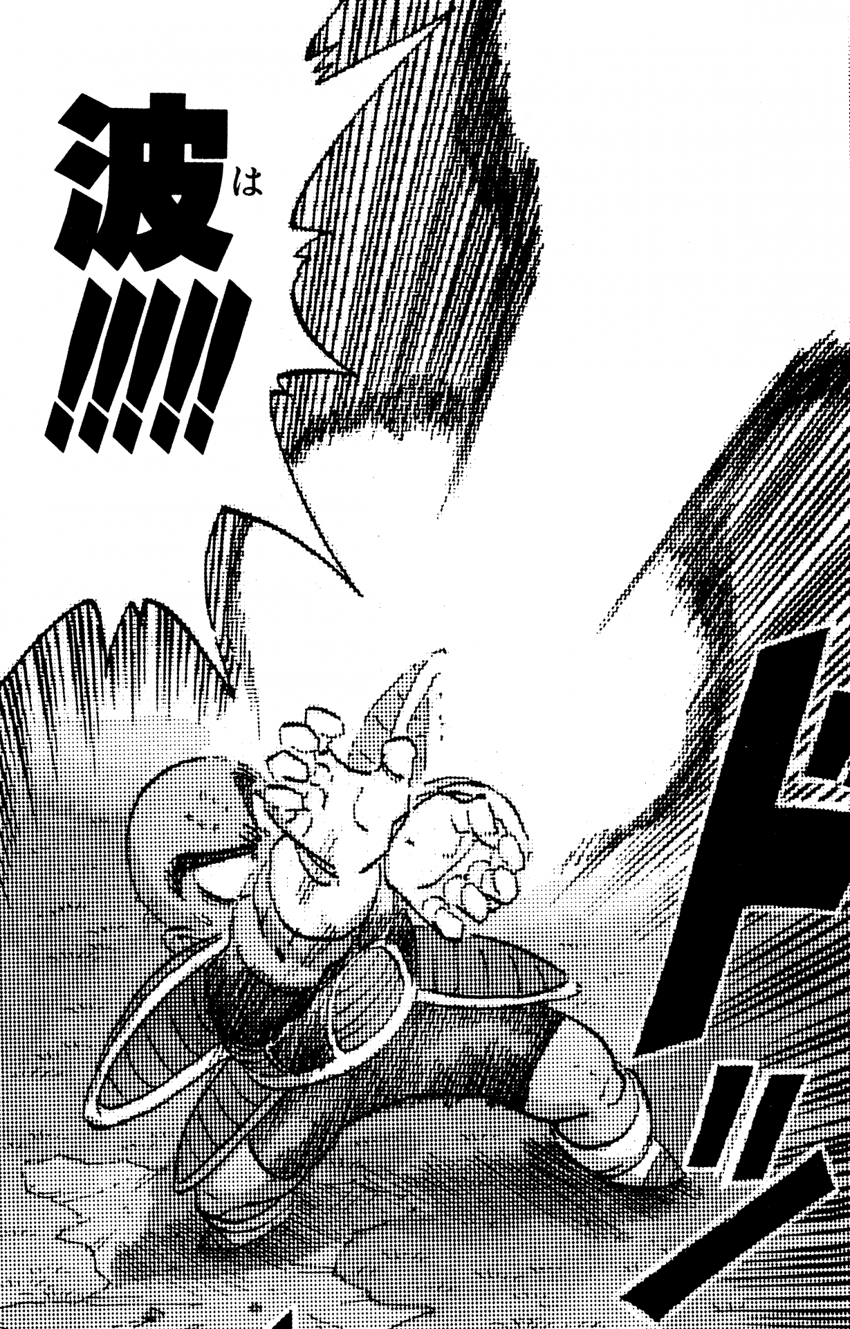 ・Tale 273, Page 14: Krillin fires at Guldo on Planet Namek. Based on Gohan's hand positioning, his move was not deemed to be a Kamehameha.
