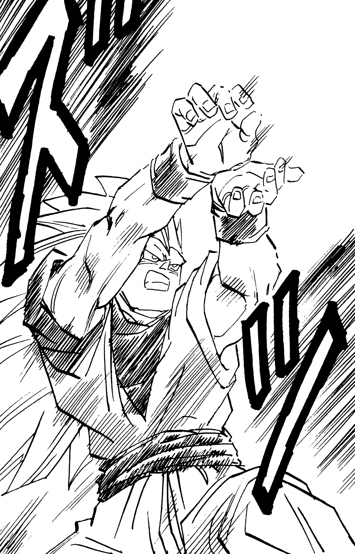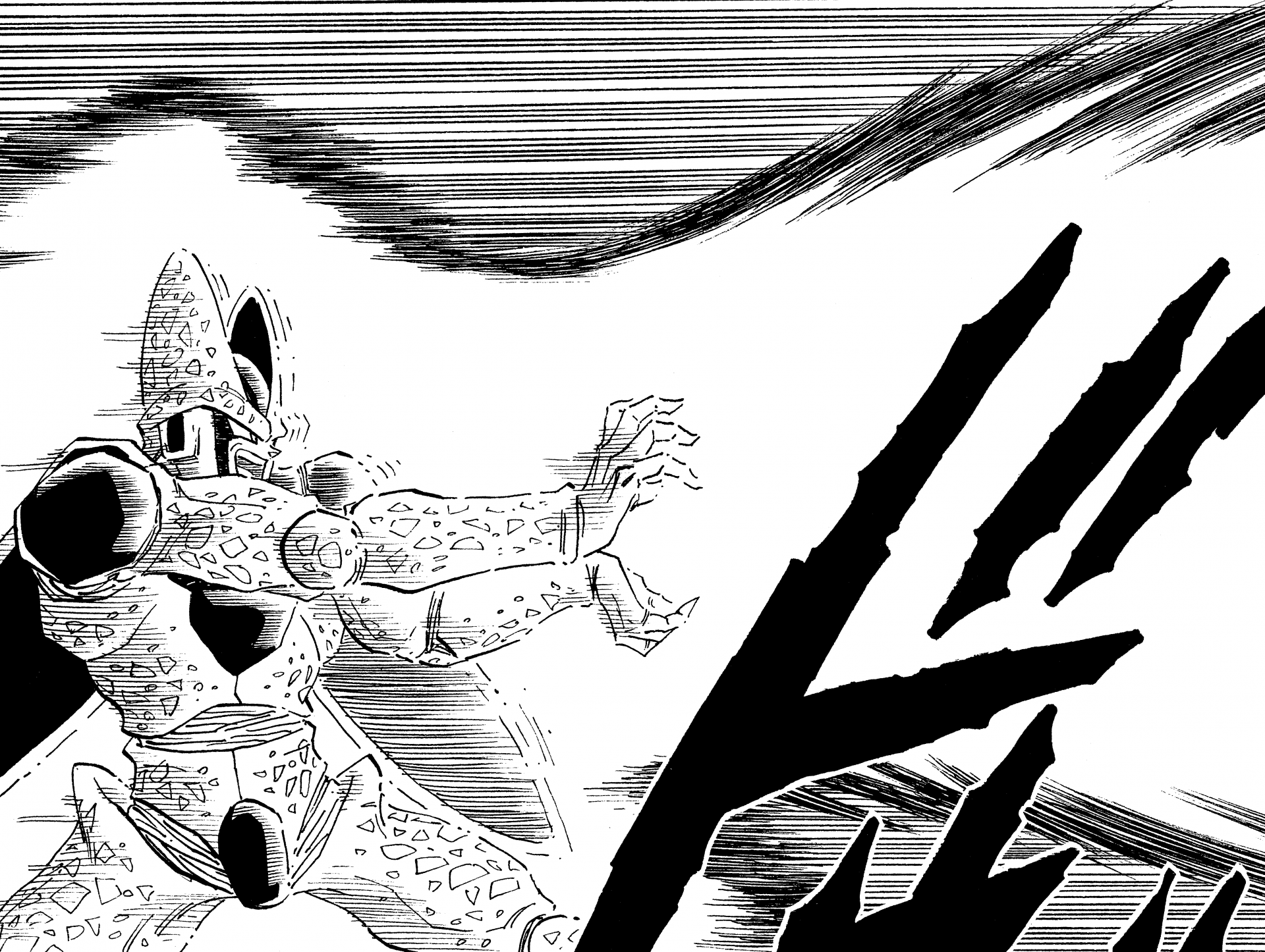 ・Tale 397, Page 12: Goku fires at Cell in the Cell Games.