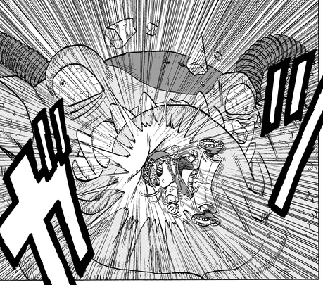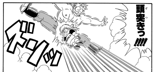 The first we see of her in this one-shot is when she uses a similarly devastating headbutt to destroy a robot Dr Mashirito Jr. created to defeat her.