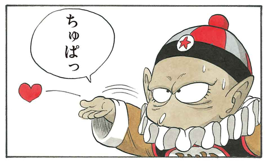 Seeking to discern the location of the final Dragon Ball, Pilaf interrogates Bulma and threatens to do "something nasty" to her should she refuse to cooperate. However, the terrible consequence of defying Pilaf turns out to be nothing more than him blowing Bulma a harmless, somewhat bashful kiss, which has no effect on her at all!