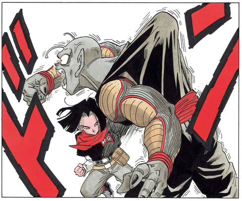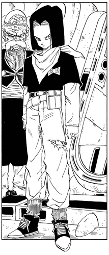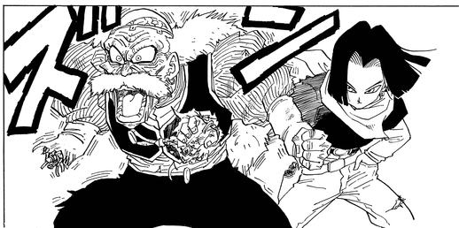 17 shows his incredible strength again when he quickly disposes of Trunks, who had cut in on Android 18's duel against Vegeta, and he is also able to easily deal with both Tenshinhan and Piccolo.