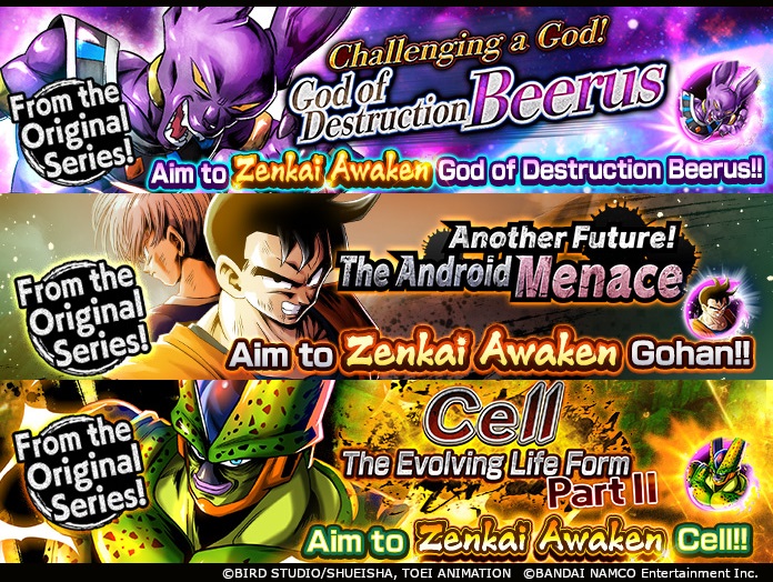 Clear all three to get Z Power and Awakening Z Power for Gohan (DBL08-06E), 2nd Form Cell (DBL04-02E), and God of Destruction Beerus (DBL13-04E)!