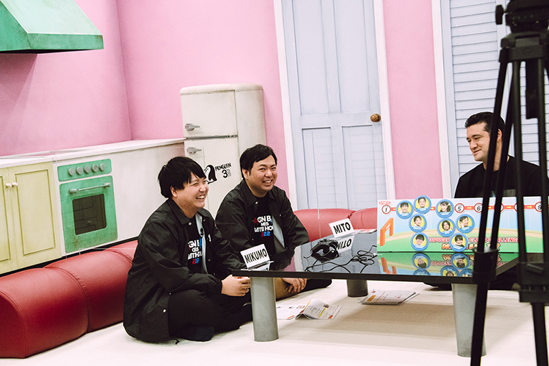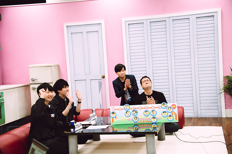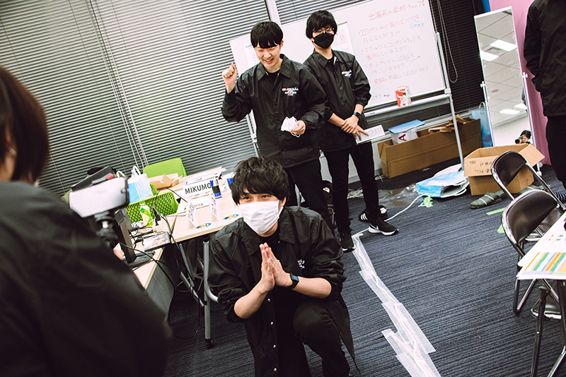 TOSHI had changed into his Battle Hour attire and was standing by. His advice for first-time challenger OMATSU was, "As long as you're having fun while you play, the people watching will have fun too. Since you're first at bat, make sure you don't get flustered!"