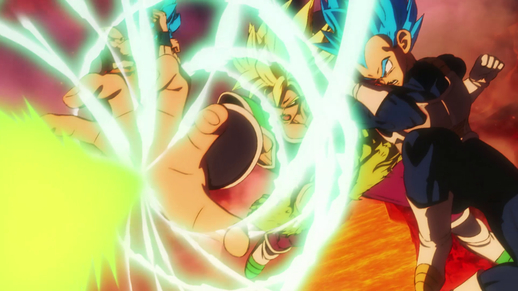With the power of the Great Ape inside of him, Broly began to overwhelm Vegeta in his Super Saiyan God form before it appeared he had reached his limit against Super Saiyan God Super Saiyan Goku.