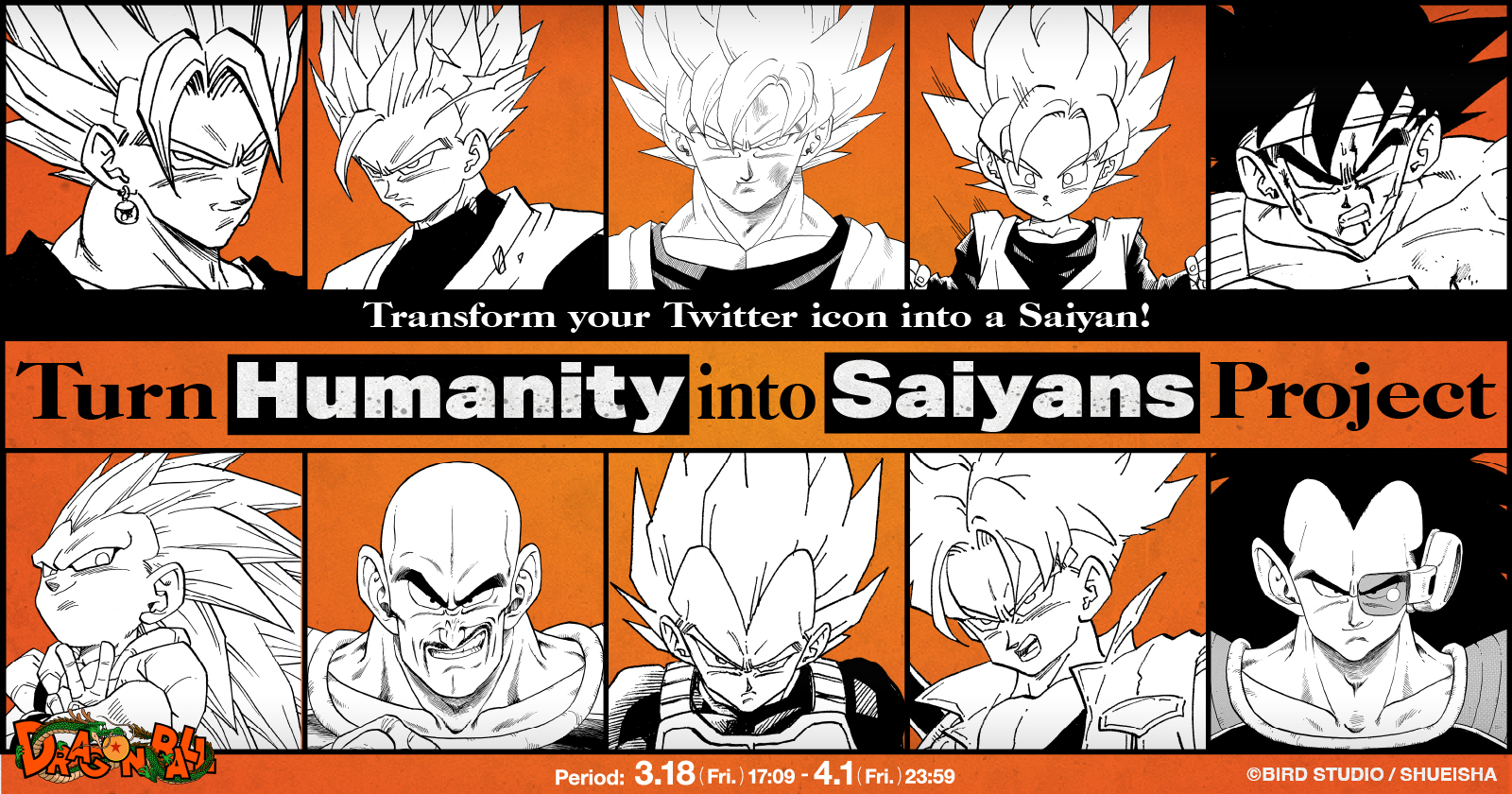 By linking your Twitter account to the campaign site, your icon will automatically change on March 18! The ten possible icons include Goku, Vegeta, and a roster of other Saiyan warriors, one of which will be randomly applied to your account! Be sure to join the campaign to see which Saiyan icon you get! It's time to take over Twitter with your fellow Dragon Ball fans around the world!