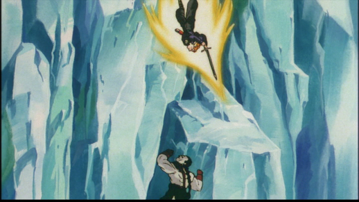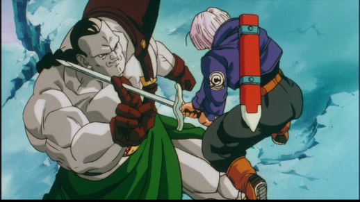 Goku and Trunks then led the two Androids away from the city to a glacier to continue their battle.